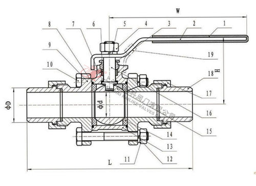 Q21F三片式活接對焊球閥結構圖
