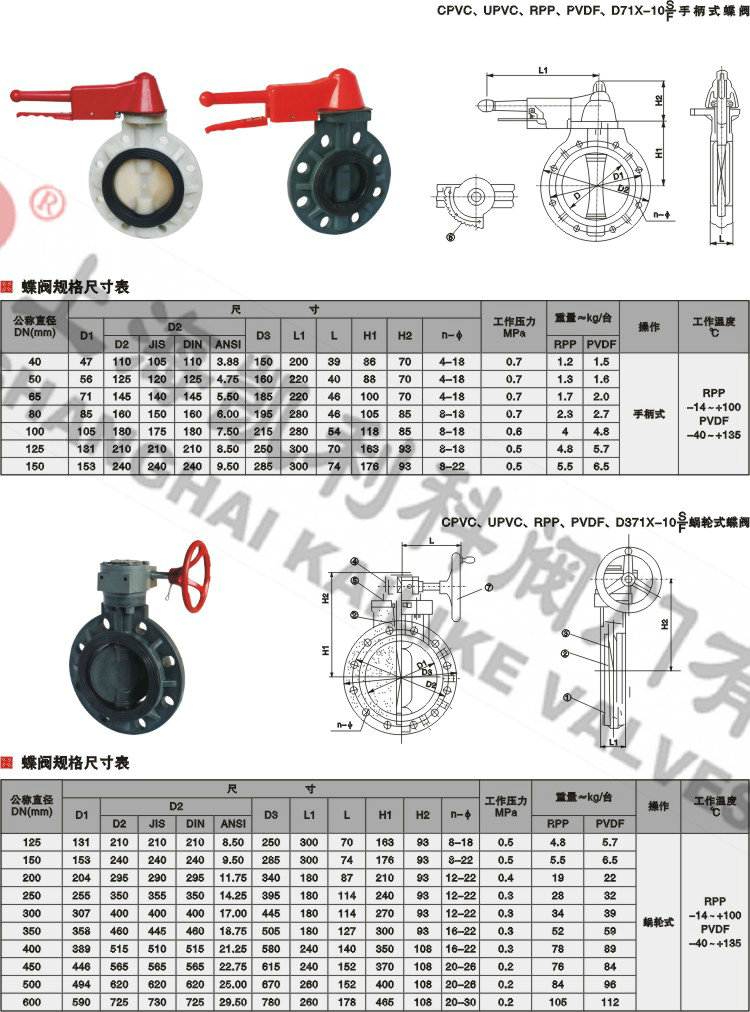 4、PVDF塑料蝶閥主要根據剖面、長度、高度、外形等作出說明。