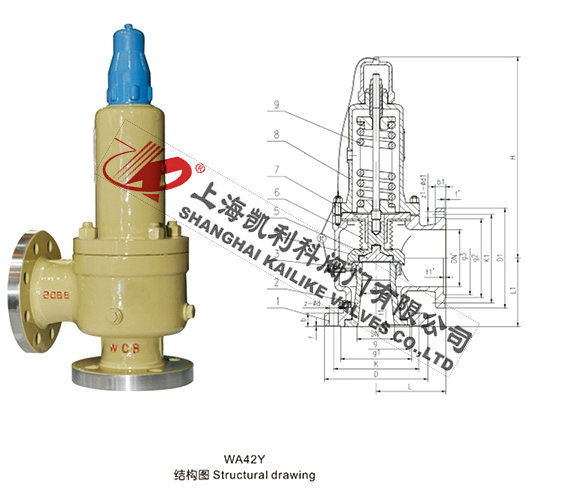 WA42Y波紋管平衡式安全閥結構主要是給安裝單位提供具有更好的了解該WA42Y波紋管平衡式安全閥的外形結構、使用時考慮到工況、環境等因數在應用中有著更合理的計劃規范,不會在安裝時產生空間使用不合理等常見問題。本結構圖所屬上海凱利科閥門有限公司提供,并提供相關外形尺寸,在應用中可以作為參考。