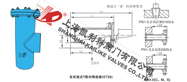 ST36對焊連接反折流T型過濾器結構主要是給安裝單位提供具有更好的了解該ST36對焊連接反折流T型過濾器的外形結構、使用時考慮到工況、環境等因數在應用中有著更合理的計劃規范,不會在安裝時產生空間使用不合理等常見問題。本結構圖所屬上海凱利科閥門有限公司提供,并提供相關外形尺寸,在應用中可以作為參考。